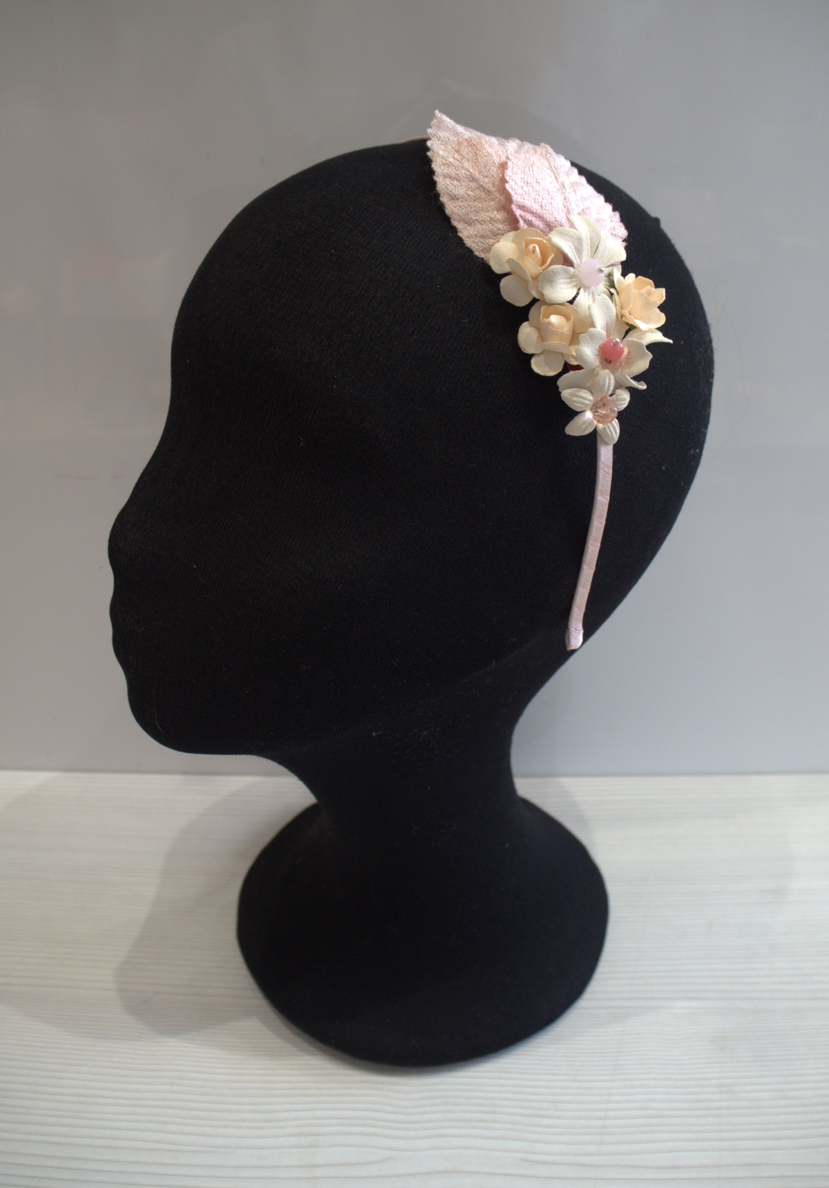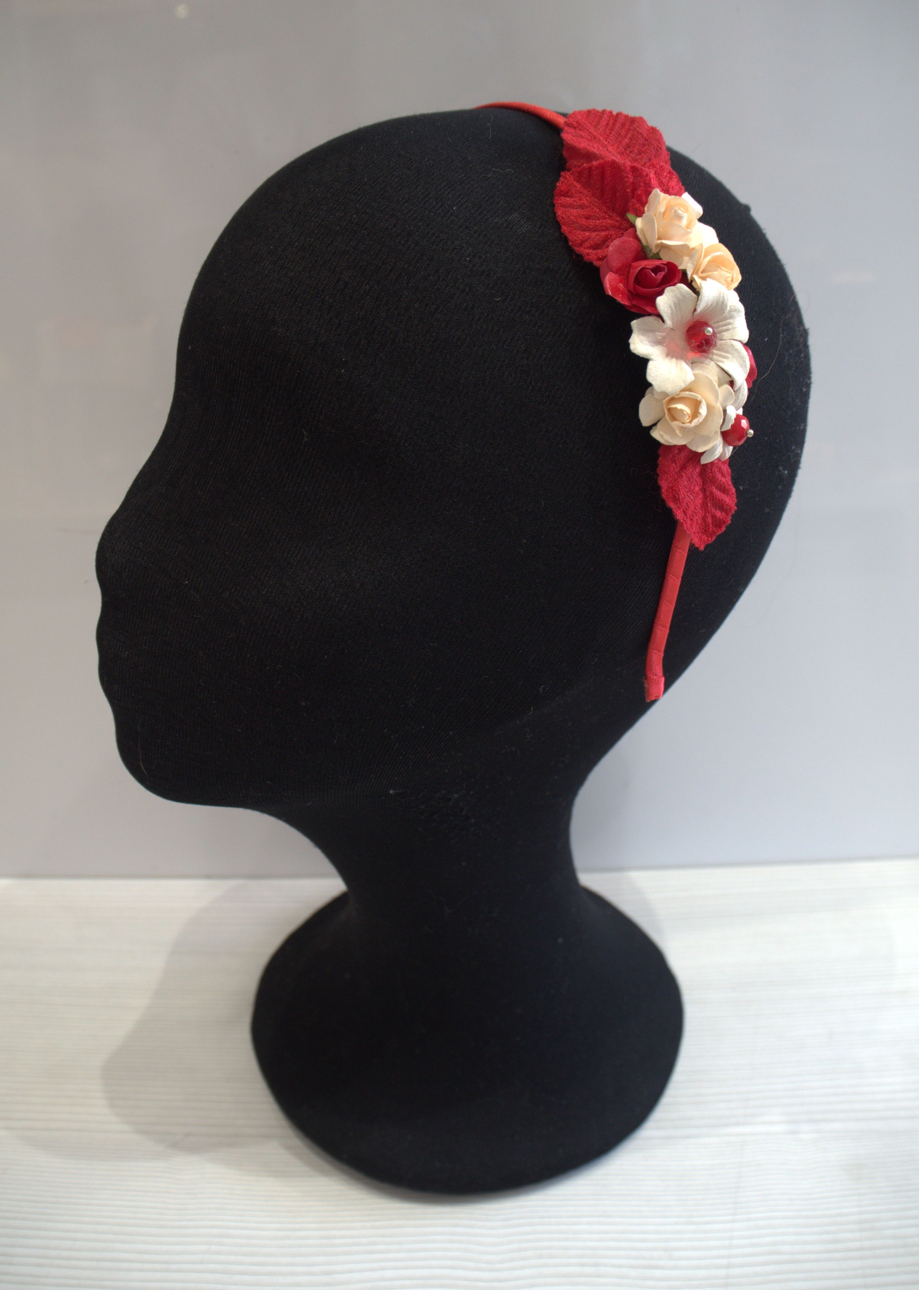Diadema hecha a mano con flores y cristales facedados.