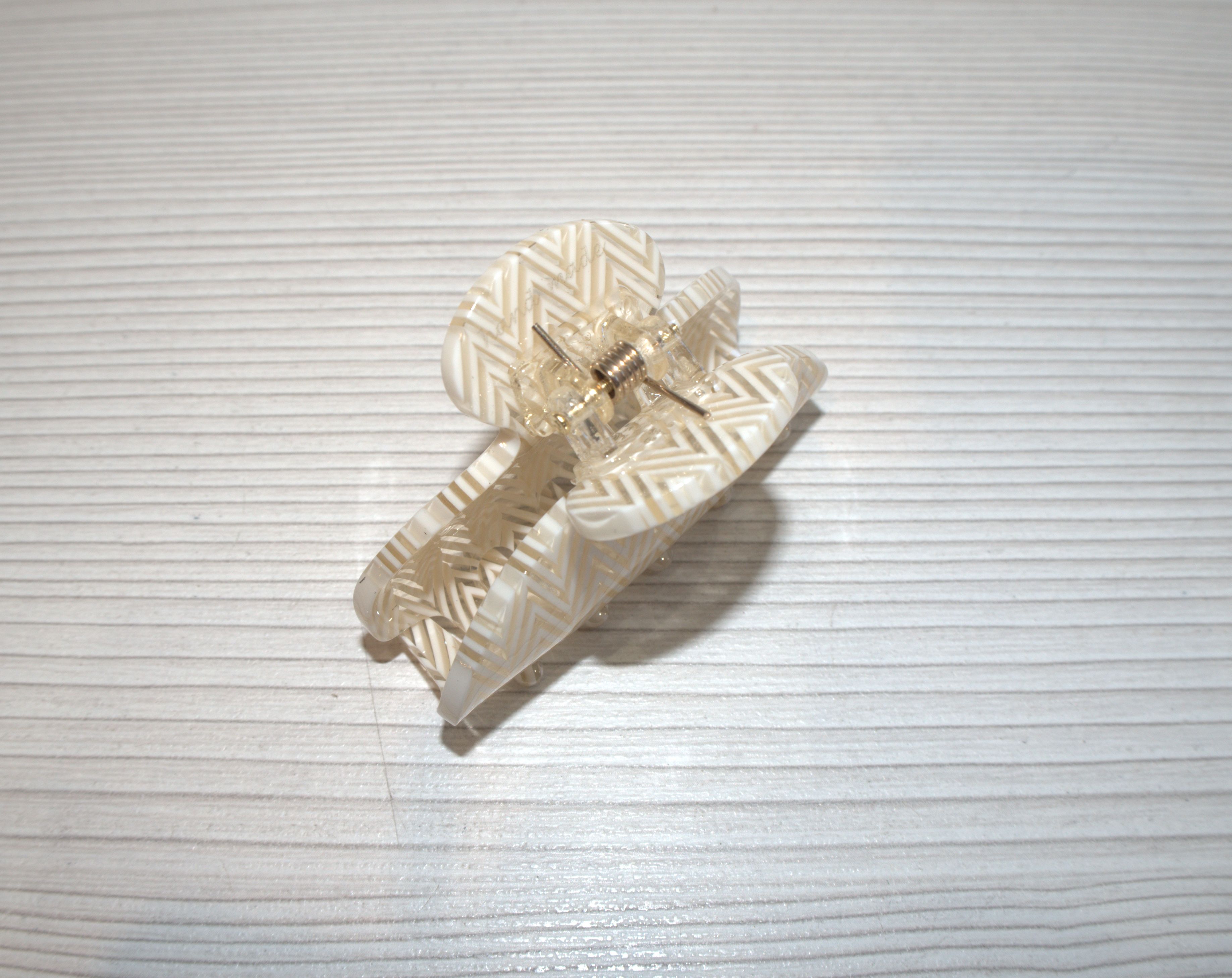 Pinza de acetato mediana realizada a mano en tono blanco